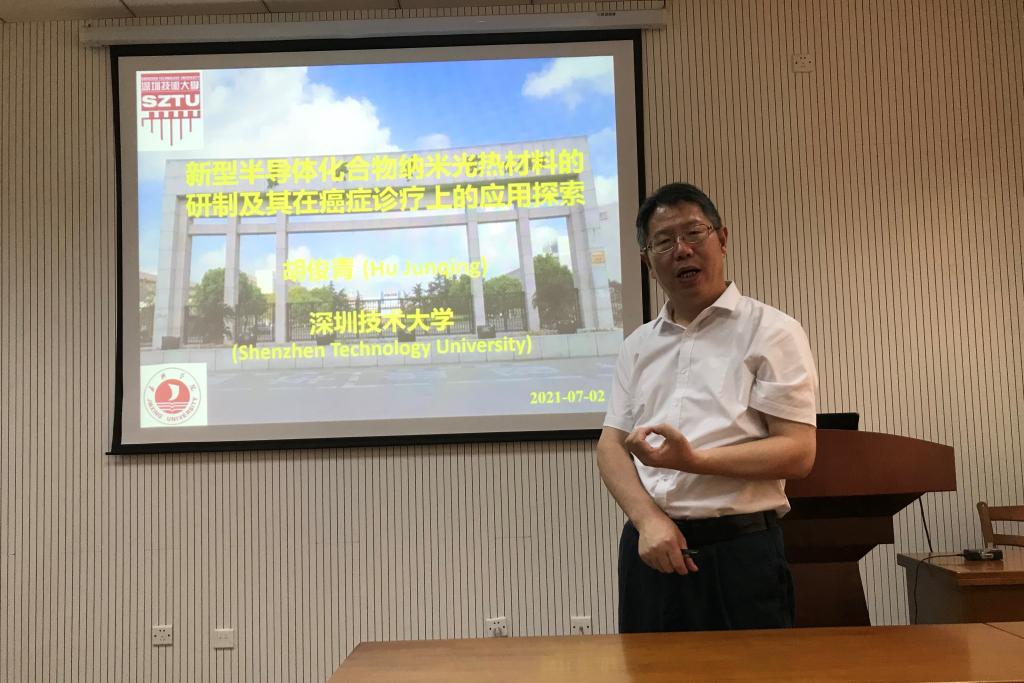 7月2日上午,应性福勃士 邀请,深圳技术大学健康与环境工程学院院长胡俊青一行来访,并作题为“新型半导体化合物纳米光热材料的研制及其在癌症诊疗上的应用探索”的学术报告,学院刘小明教授主持讲座,全院师生30余人到场聆听。