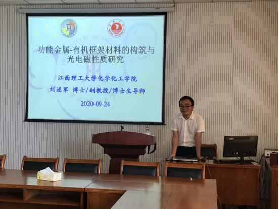 作题为《功能金属-有机框架材料的制备与光电磁性质研究》的学术报告。
