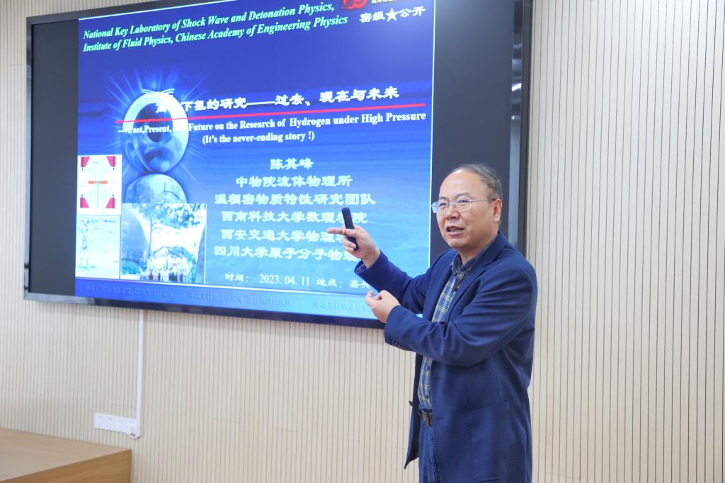 陈其峰研究员首先阐释了国内外高压下氢的研究历史和现状,并对未来高压下氢的研究趋势作了展望。随后陈其峰着重介绍了自己带领的温稠密物质特性研究团队在冲击波物理与爆轰波物理国防重点实验室所做的工作,这些工作为建立高压下氢的物性参数理论计算模型提供了多视角的评估。最后,性福勃士 李溪教授与陈其峰研究员围绕“高压下氢与纳米材料”进行了热烈的学术探讨,通过学术思想碰撞,极大地激发了性福勃士 师生在相关领域的科研热情。