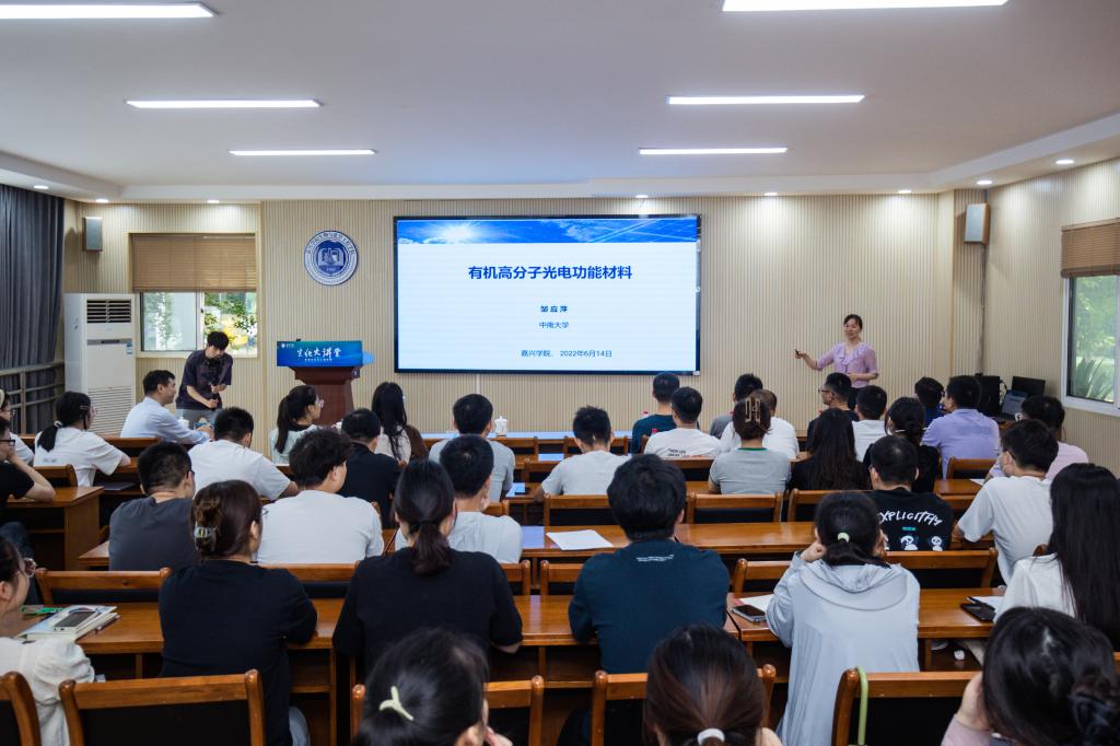 邹应萍教授从有机高分子材料的结构特点出发,围绕有机高分子光电材料化学结构的设计合成及性能调控,详细介绍了其课题组在有机太阳能电池、近红外成像以及蛋白质芯片开展的系列工作以及最新进展,尤其是在有机太阳能电池领域,独创性地开发的高度可重复、高性能Y系列非富勒烯受体材料,已被海内外二十余家公司生产并销售。邹教授还回顾自己从读研究生到高校教师阶段二十年以来的研究经历,鼓励师生们要坚定自信、英雄不问出处,要坚持创新、敢于突破,聚焦国家发展所需开展科学研究和关键技术攻关。