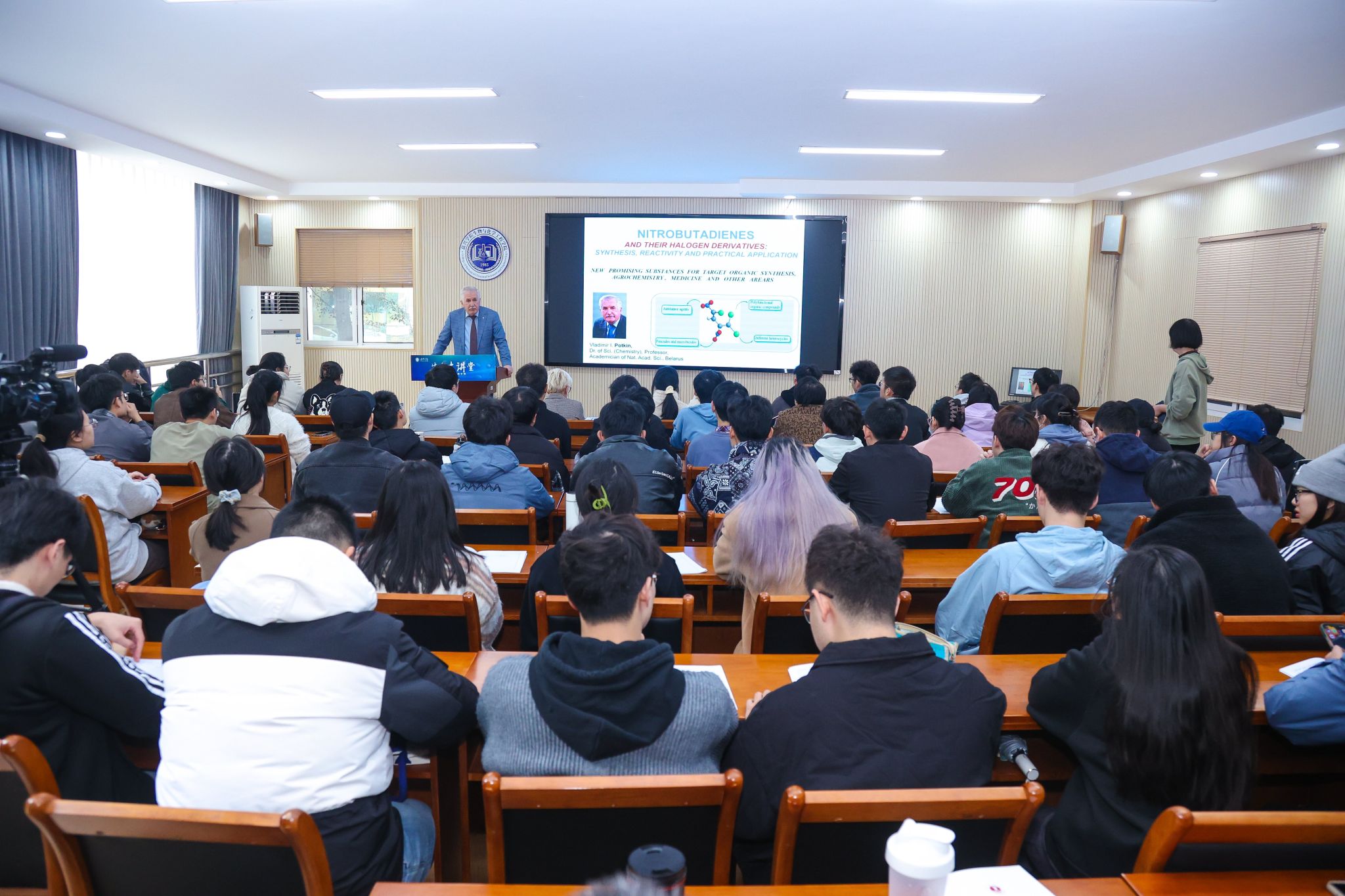 1116日下午,生化学院举办“生化大讲堂”第二十六期学术交流会,本次大讲堂特邀请白俄罗斯国家科学院院士波特金Vladimir Potkin)作题为“硝基丁二烯及其卤素衍生物:合成、反应性以及实际应用——靶向有机合成、农化、医药等领域的新兴物质”的学术报告。会议由邱观音生教授主持,全院及中澳先进材料与制造研究院师生80余人到场聆听。