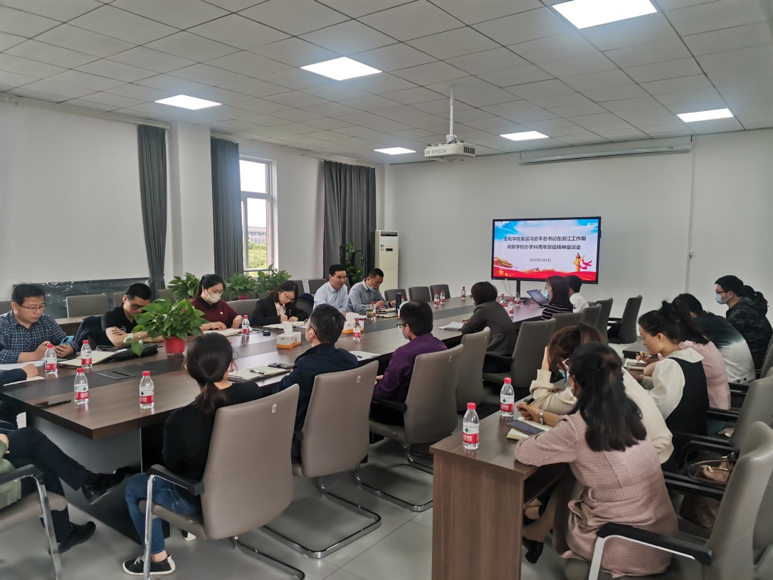 会前,学院领导班子带领大家参观了学校图书馆红船精神育人展示馆和办学成果展示馆,重温了习近平总书记在浙江工作期间来校视察影像和致学校办学90周年贺信原文,深切感受了学校红船精神育人成果及学校本科20多年办学所取得的显著成就。