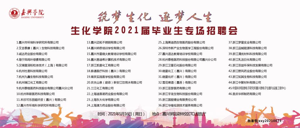 5月16日下午,生化学院2021届毕业生专场招聘会在嘉兴学院梁林校区TCL报告厅大厅举行。