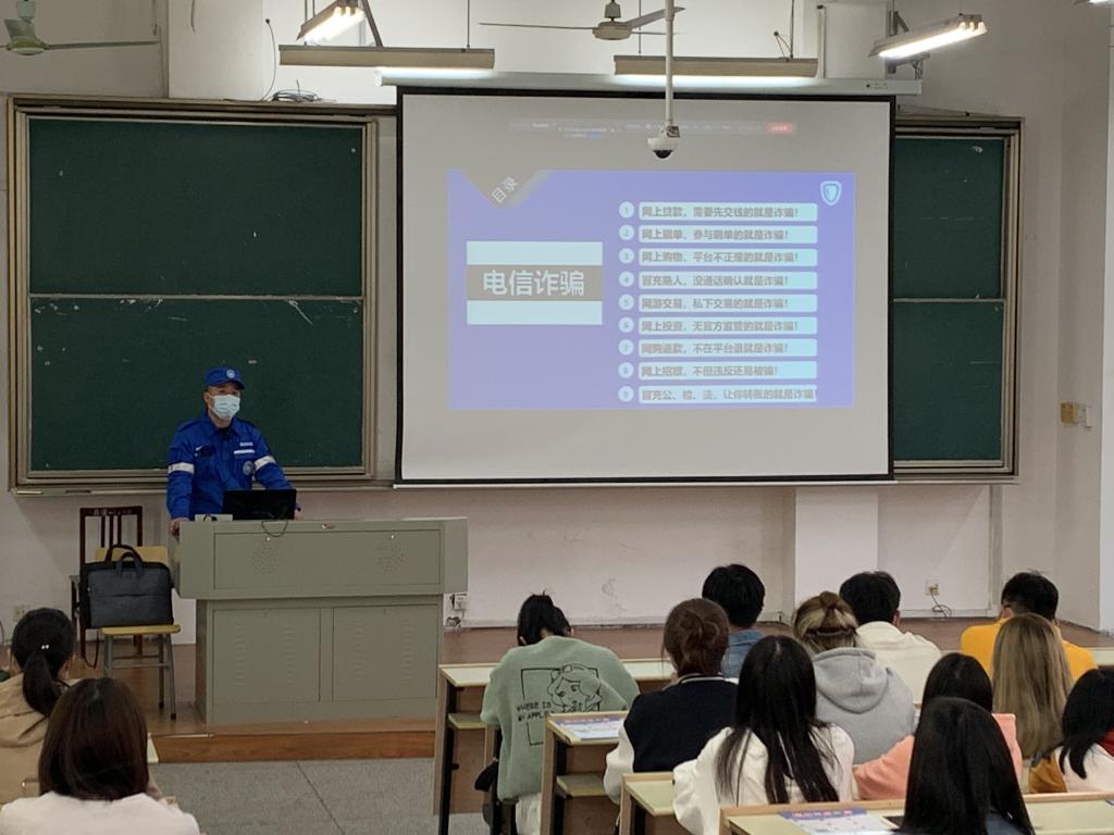 在讲座的开始,张警官为学生介绍了“浙江反骗码”,同学们通过这个小程序可以了解更多反诈知识。随后宣讲员进一步阐述了电信网络诈骗的定义以及主要的形式,列举了详尽生动的案例,剖析了个人信息泄露的原因,揭露广大诈骗犯的常见作案手段,并传授了防范对策,同时,他强调行骗手段千变万化,只有时刻提高警惕、不贪图眼前利益、注意保护个人隐私,才能更好的防止网络诈骗事件的发生。
