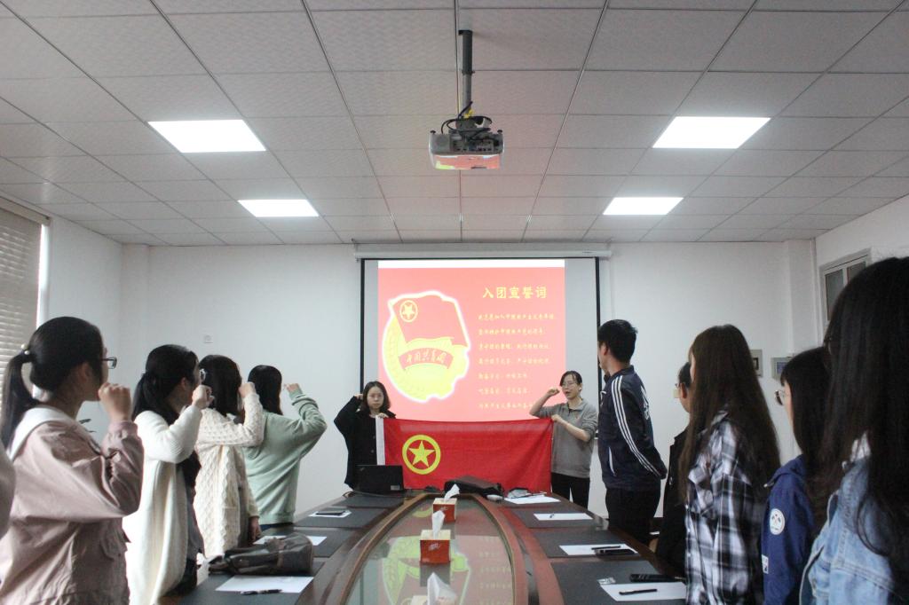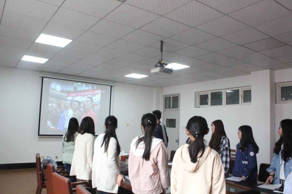 在大会正式开始之前,进行了重温入团誓词和佩戴团徽活动。会议开始后,全体同学与国家领导人一同起立,高唱国歌,随后,习近平总书记发表重要讲话。对于广大青年同志总书记提出了六点要求:新时代中国青年要树立远大理想要热爱伟大祖国要担负时代责任要勇于砥砺奋斗要练就过硬本领要锻炼品德修为。习总书记对中国青年的殷切期望激发了在场的同学的奋斗热情。