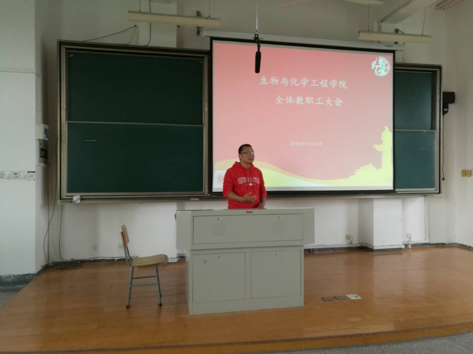 方苏华书记宣布生化学院正式进入审核评估状态,他要求所有教职工众志成城,以最好的精神面貌投入到评估工作中。
