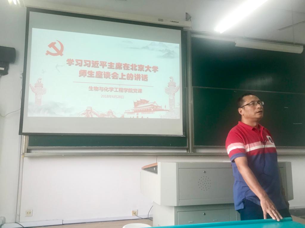 6月28日下午,生化学院方苏华书记以“学习习近平总书记在北京大学师生座谈会上的讲话”为题为学院全体师生党员上了一堂专题党课。