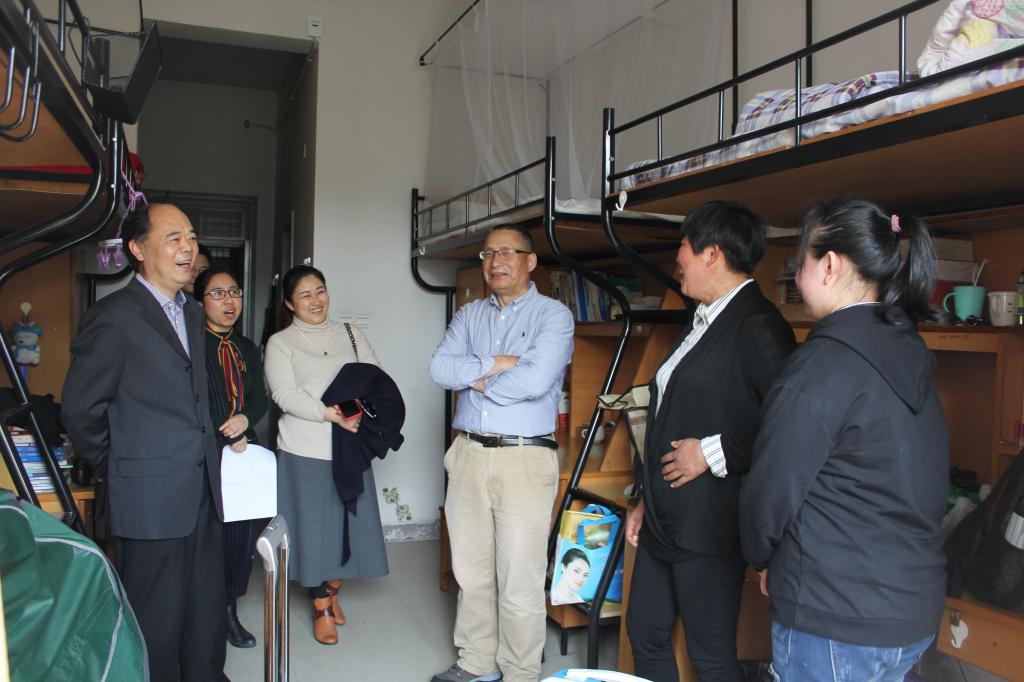 3月4日,校纪委书记张文华在性福勃士 党委书记方苏华、副书记蔡运男的陪同下到学生寝室进行走访。