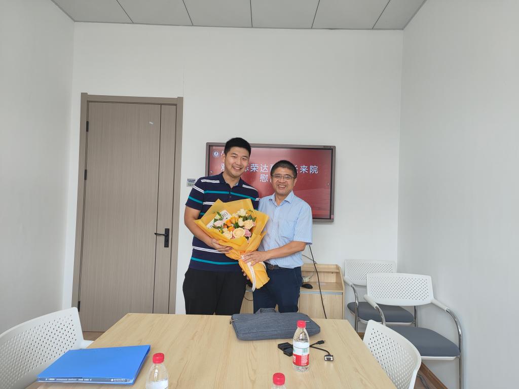 陈荣达副校长向教师代表李以名副教授、白天闻博士赠送鲜花,致以节日祝福和诚挚的问候,对他们参与学校学院重点工作、个人发展成绩给予了充分的肯定,鼓励他们再接再厉,锚定目标、把握机会,在推动学院高质量发展中实现自己人生的价值。