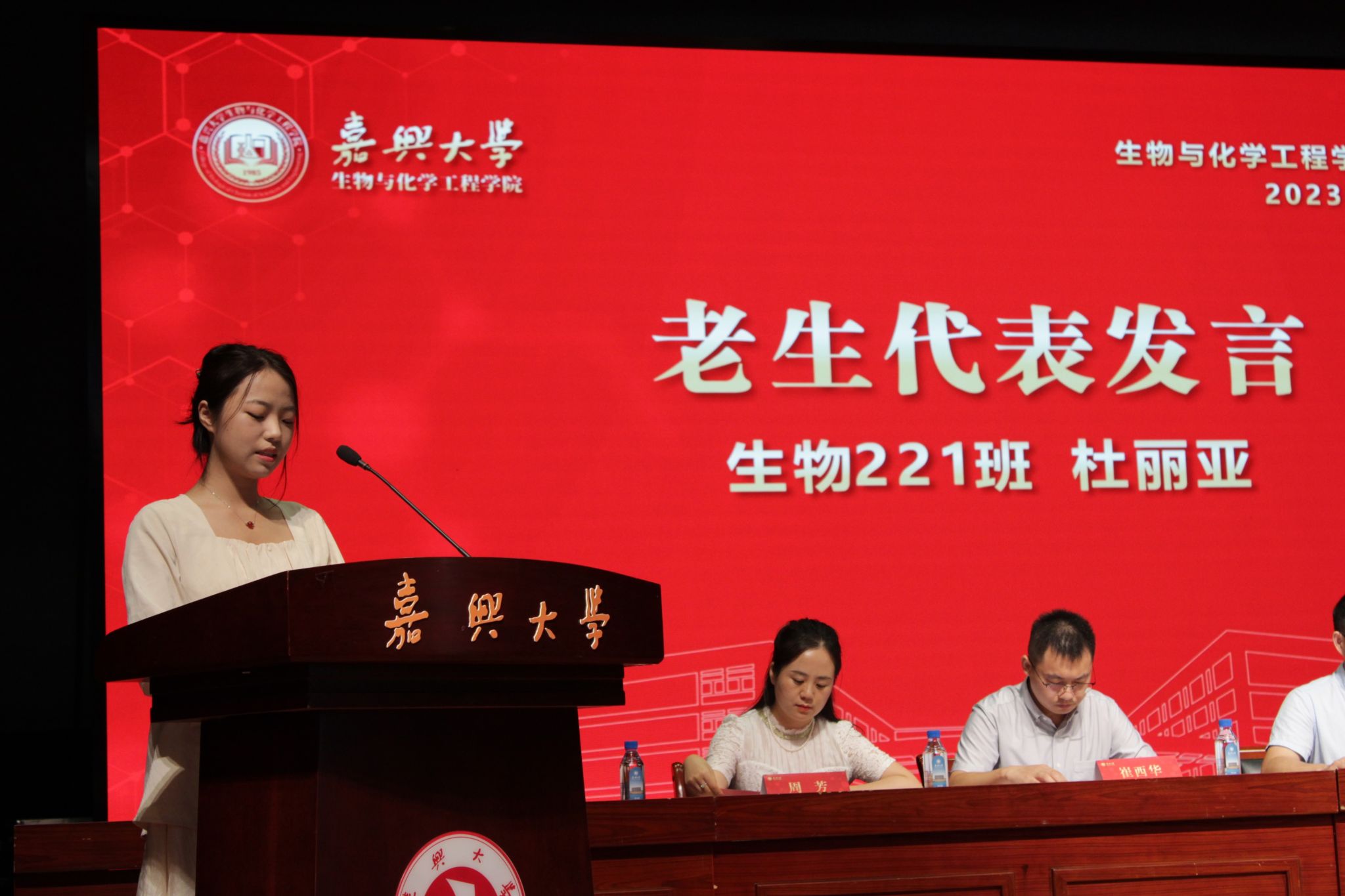 材料与化工专业24级研究生彭心根、制药专业24级本科生孙佳毅、生物221班杜丽亚分别代表研究生、本科新生、在校生进行发言。他们表示,作为中国革命起航地红船旁的大学生,他们将在立志笃行中胸怀“国之大者”,在躬身力行中修炼扎实学识,承担使命、读书创新、追逐梦想,在新的起点上奋力跑出这一代人的最好成绩。