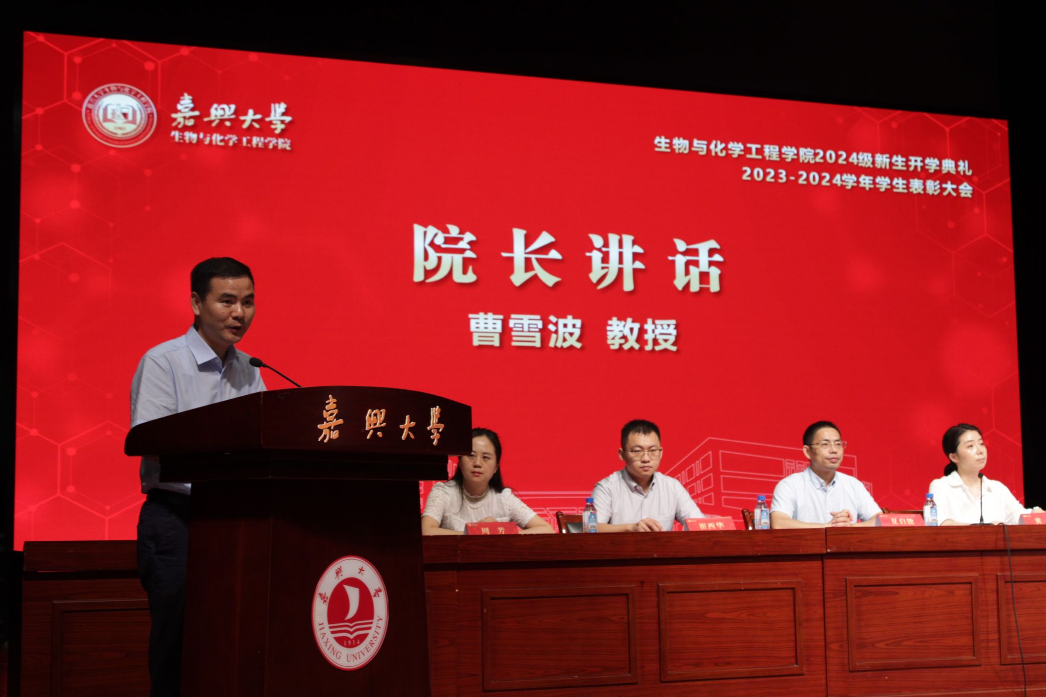 生化学院开学典礼暨2023-2024年度学生表彰大会是学院“大思政课”的重要形式之一,通过精心组织的仪式教育、典礼教育,以独具特色的文化育人场域,让校风学风传承起来、师生互动密切起来、思政教育生动起来。新征程赋予新使命,新使命呼唤新作为,新生化人,向着光荣与梦想,奋楫扬帆再出征!