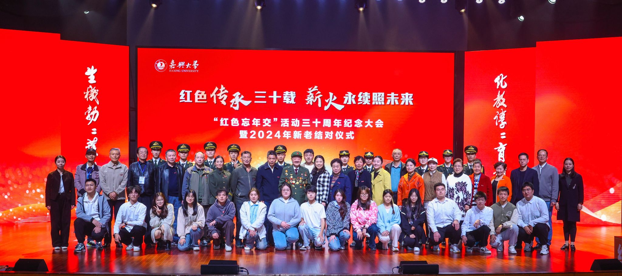 11月23日下午,我校“红色忘年交”活动三十周年纪念大会暨2024年新老结对仪式在学校初心剧场举行。校党委副书记陈立力出席大会并致辞。嘉兴市新四军历史研究会顾问、原嘉兴学院党委副书记唐瑞娥,嘉兴市新四军历史研究会会长周军,副会长张红宇、阮茂荣,“红色忘年交”活动发起人王继述的女儿王佳,活动早期组织者吴建一老师和活动早期参与师生代表等受邀出席大会。