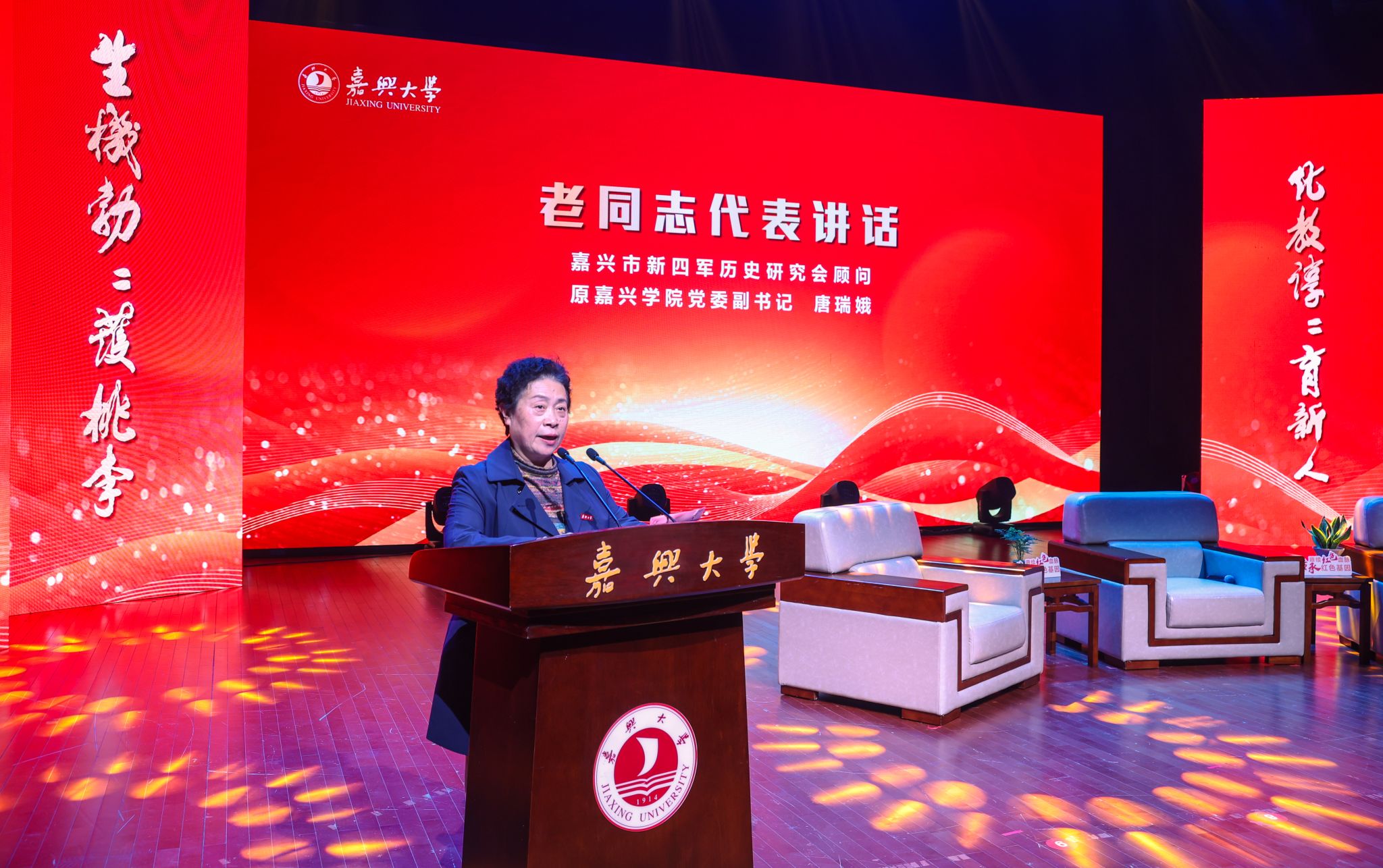 唐瑞娥深情回顾了“红色忘年交”开展期间发生的感人故事。她表示,作为嘉兴市新四军历史研究会的一员,她很荣幸见证了“红色忘年交”活动从一颗信念的种子出发,在校园扎根发芽成长为参天大树的过程。“三十共成长、正芳华、再出发”,在新的起点上,“红色忘年交”的师生们定会携手并进,共同书写新的篇章。