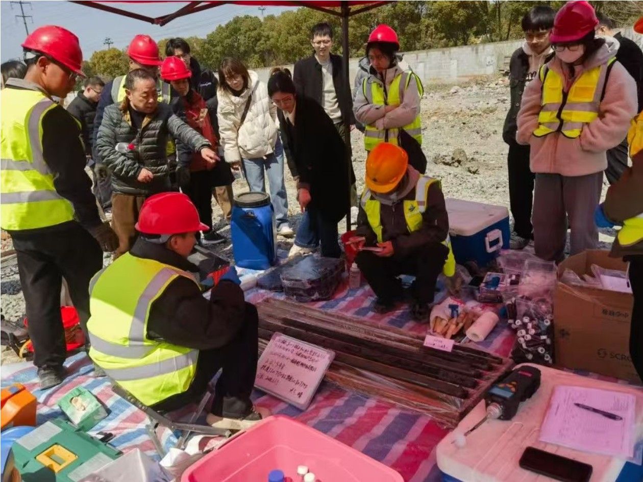 学员们现场观摩了我校《嘉兴市锦丰纺织整理有限公司地块土壤污染治理项目》土壤及地下水全流程样品采集工作,包括钻探、建井、取样、保存与流转等环节。