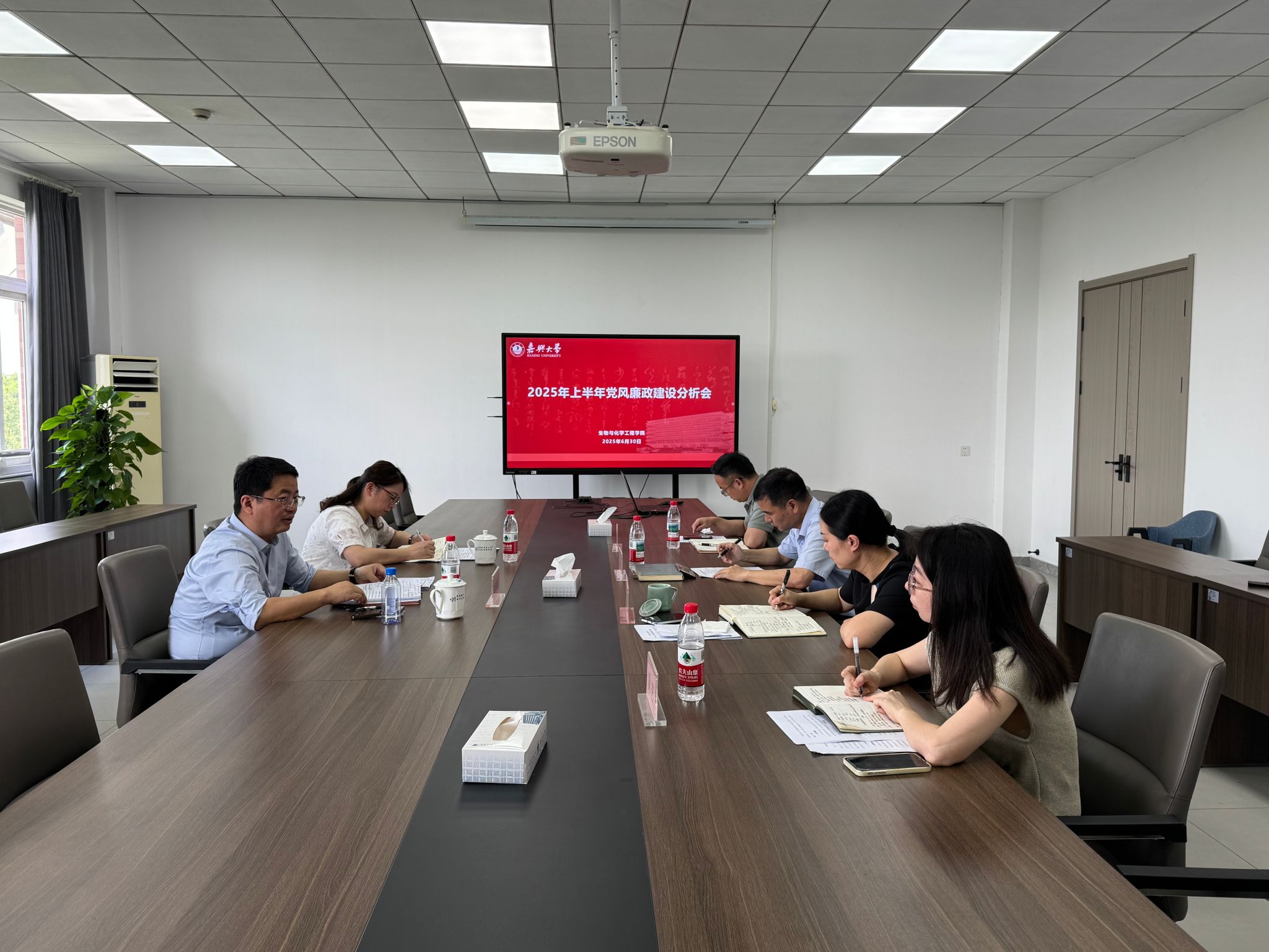 630日上午,学院在仁济楼403会议室召开2025年度上半年党风廉政建设情况分析会。会议由院党委书记任玉萍主持,学院全体党政领导班子成员参加,校党委委员、副校长於建明到会指导,校纪检监察室主任杨丽娜列席会议。