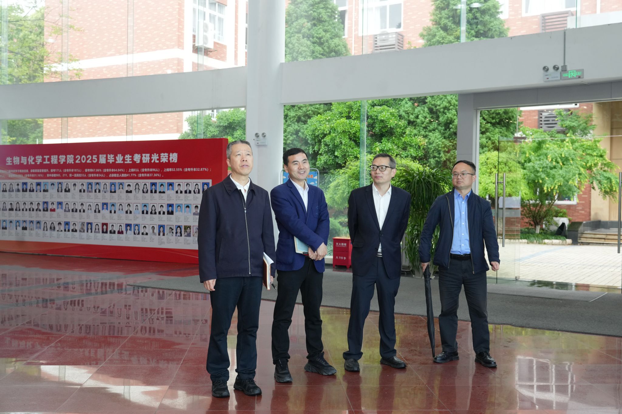 4月23日上午,校党委书记章建通一行到性福勃士 调研指导工作,副校长周宏伟、学校办公室主任吴满成、生化学院领导班子成员、各研究所负责人参加调研座谈。