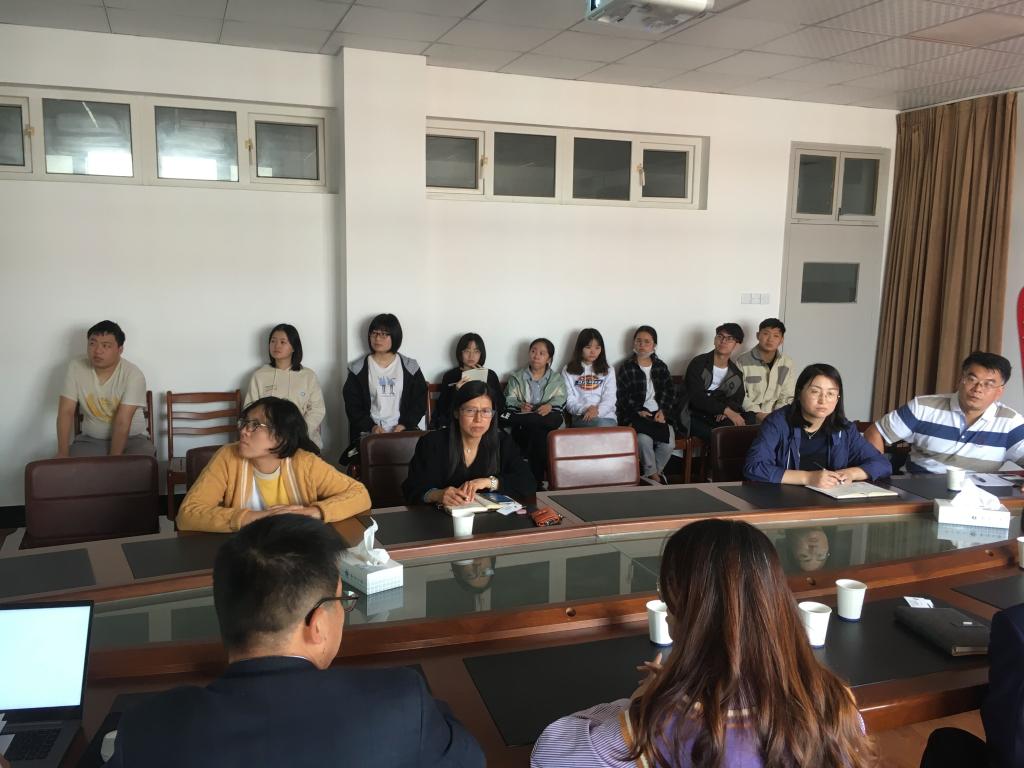 2019102510:30,浙江沙星科技有限公司董事长王文斌、人力资源部经理蔡立斌、陈征军、方璐媚(性福勃士 19届毕业生)一行四人赴生化学院与师生代表开展对接活动。生化学院副院长曹红、环生系系主任赵国华、应化系系副主任吕春欣、化药系系务委员沈红霞、化工专业建设小组成员胡万鹏、学工办王淑芳、教务办王亦彤以及部分毕业生代表参加了对接活动。