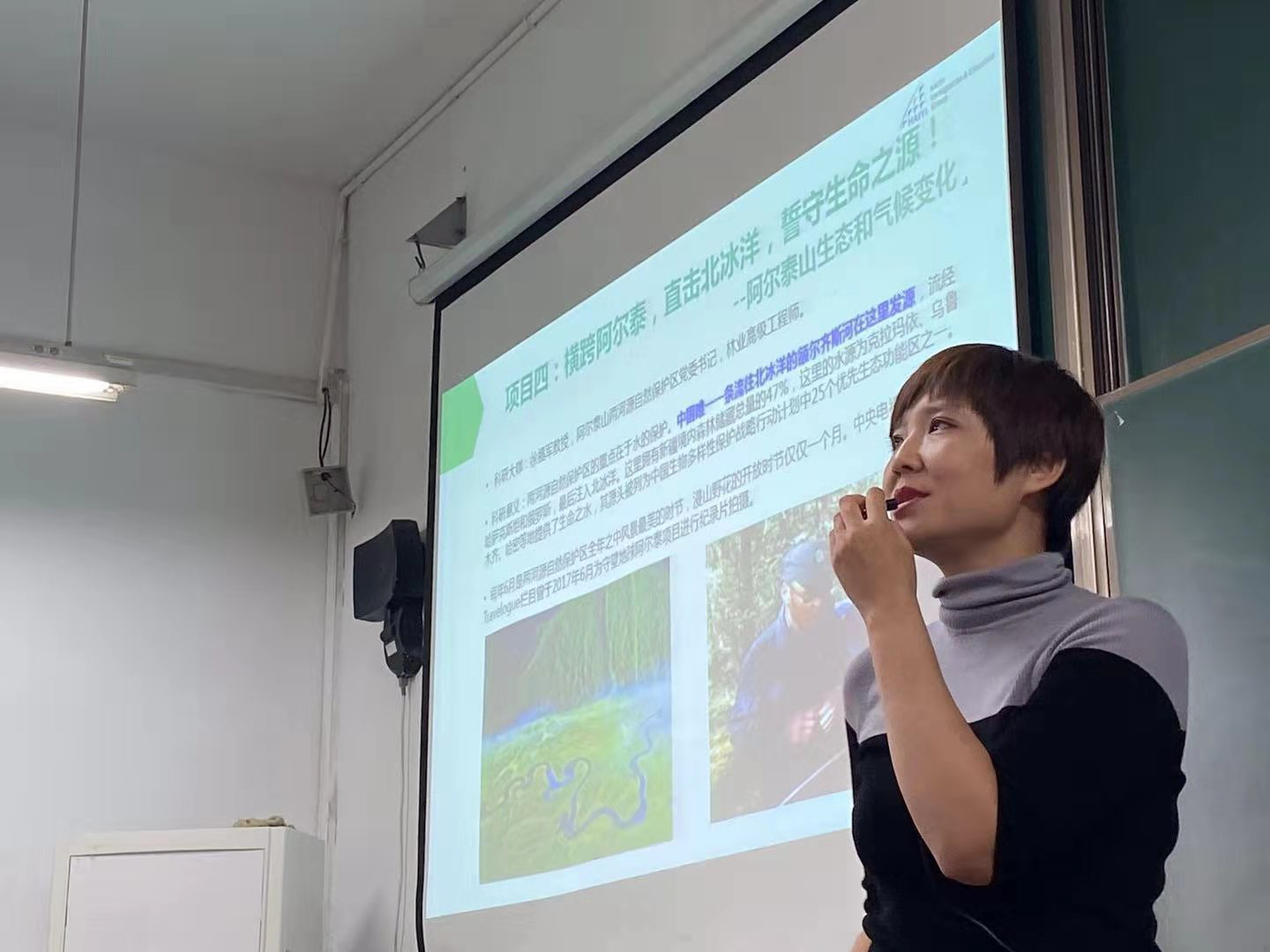 10月24日下午,由“心绿”环保协会组织开展“守望地球国际野外科考”公益讲座于梁林校区开讲。讲座邀请了海移国际教育马宏和Lily老师为同学们分享了他们参与野外科研的故事。