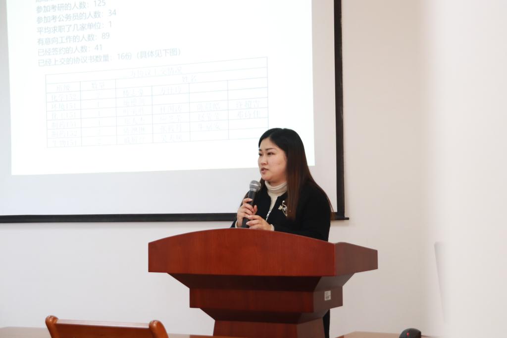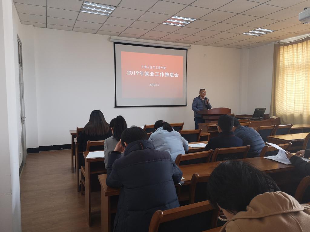 为精准就业服务、提升就业质量及跟踪调查质量,稳步推进2019年就业工作,3月7日下午2:00,性福勃士 在1号楼506报告厅召开了2019年就业工作推进会,生化学院党委书记方苏华,党委副书记蔡运男,各系主任以及2016届、2018届、2019届班主任参加了会议。