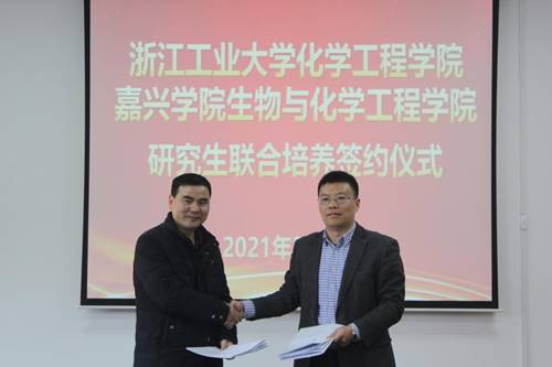 会上,曹雪波院长对卢春山副院长一行表示热烈欢迎,并简要介绍了学院基本情况。卢春山详细介绍了《浙江工业大学化学工程学院与嘉兴学院生物化学工程学院联合培养研究生合作协议》的主要内容,联培生导师详细介绍了自己的学习工作经历和科研情况。双方还就联培研究生下一步学习、教育、管理等方面事项进行深入交流,希望能充分发挥科教融合、协同育人的优势,加强导师层面、培养管理和学生管理层面的沟通协作、资源共享,提高联合培养工作的管理效率,实现人才培养双赢。随后双方举行隆重的签约仪式。